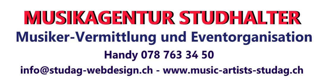 Musikagentur Studhalter ist tätig nur in der Schweiz und arbeitet ausschliesslich nur mit Schweizer Kunden zusammen.